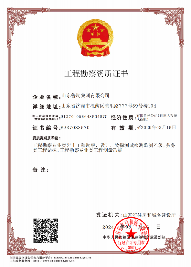 您所在的位置: 首頁- 關于魯勘 - 資質信譽 - 資質認證